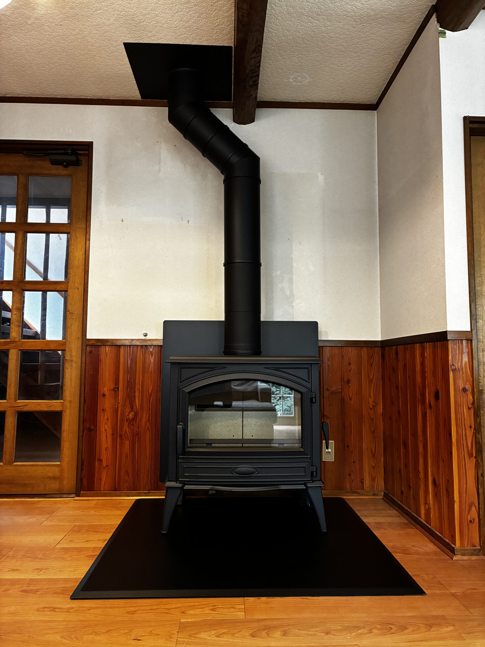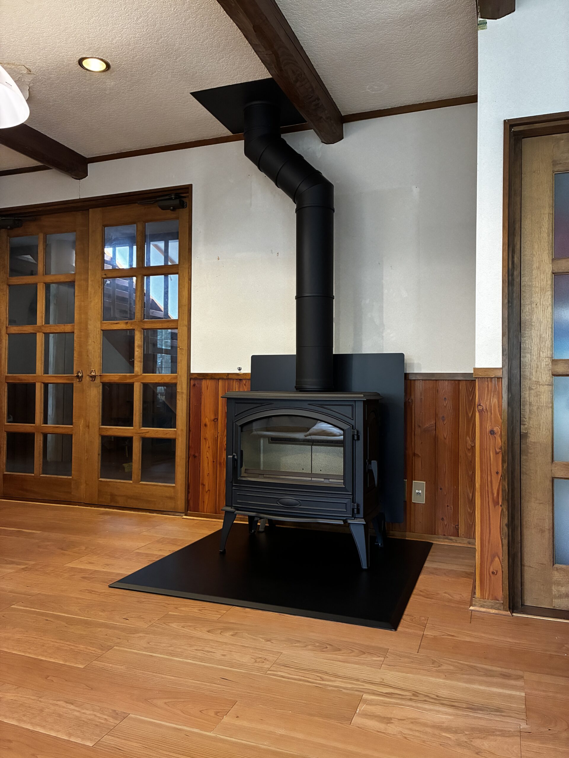 長野県信濃町の既存住宅にて、薪ストーブ ドブレ760WDを設置させていただきました。 自然豊かな信濃町へ移住された外国人オーナー。寒さの厳しい冬でも快適に暮らせる暖房設備として、薪ストーブを導入されました。 設置した ドブレ760WD は、大きなガラス窓から炎を楽しめる人気モデルで、広い炉内と高い暖房性能を備えています。薪火の暖かさが室内に広がり、ゆったりとした時間を過ごせる住まいとなりました。 自然に囲まれた信濃町の暮らしの中で、薪ストーブのある豊かな生活が始まります。