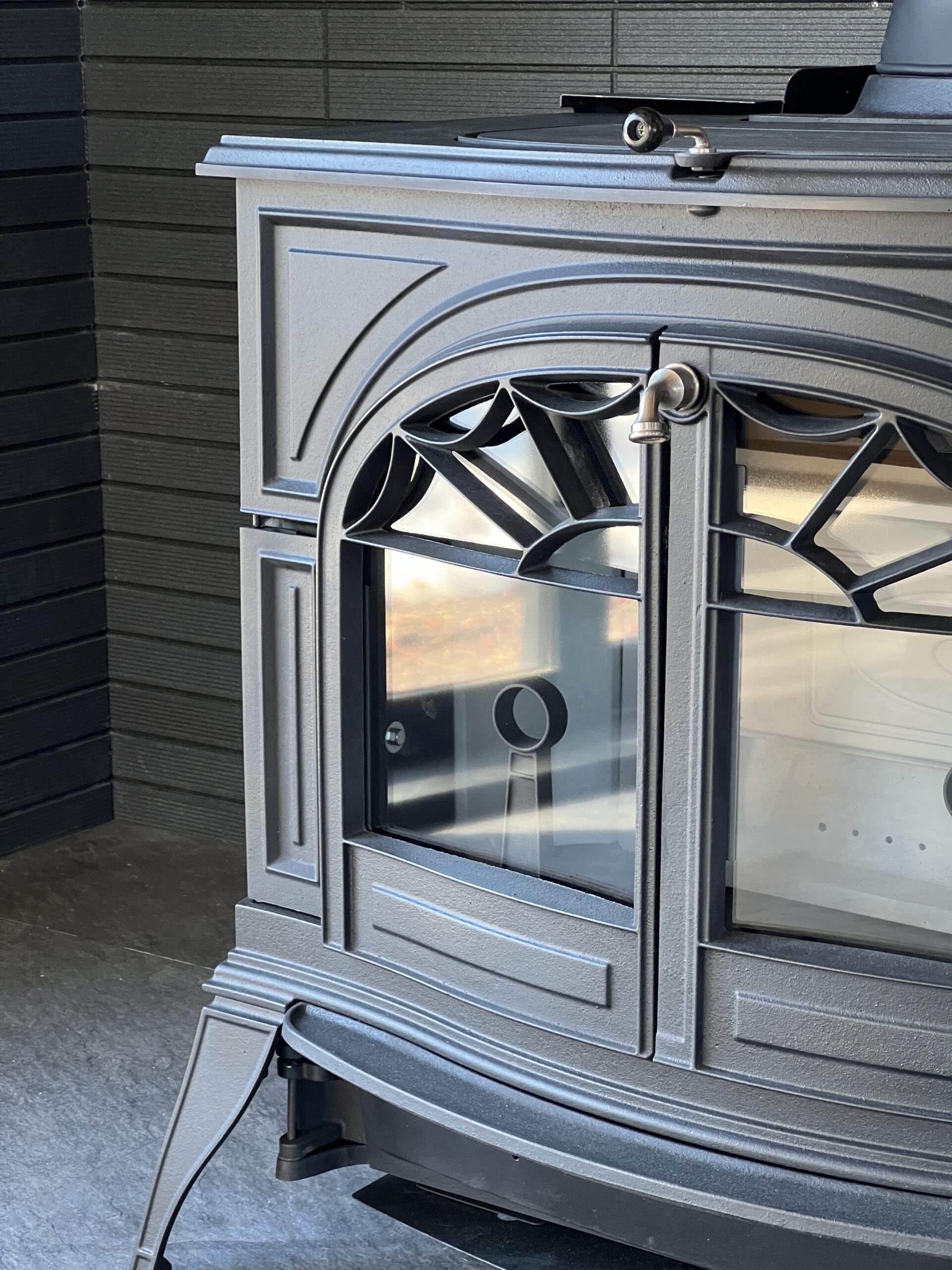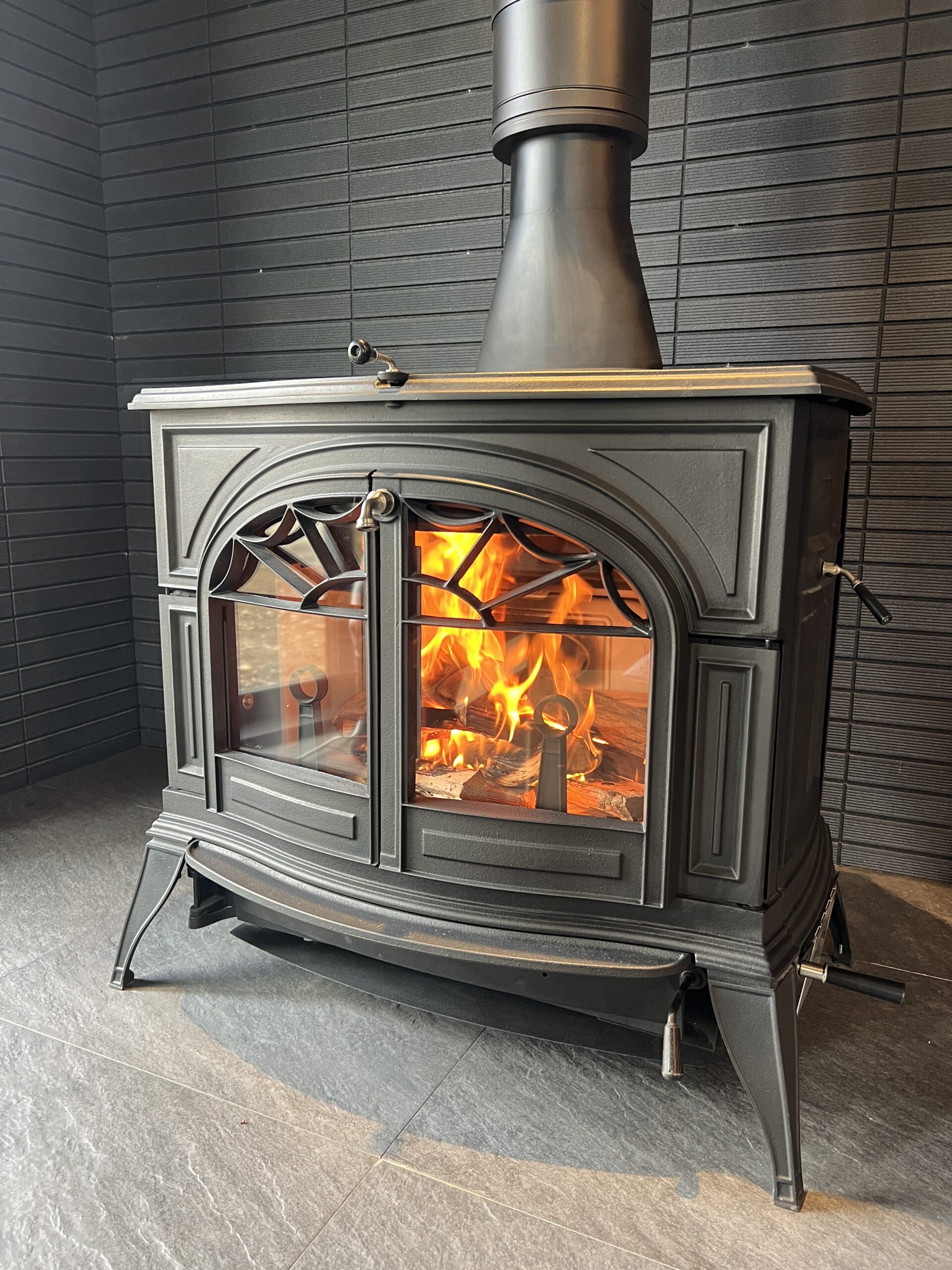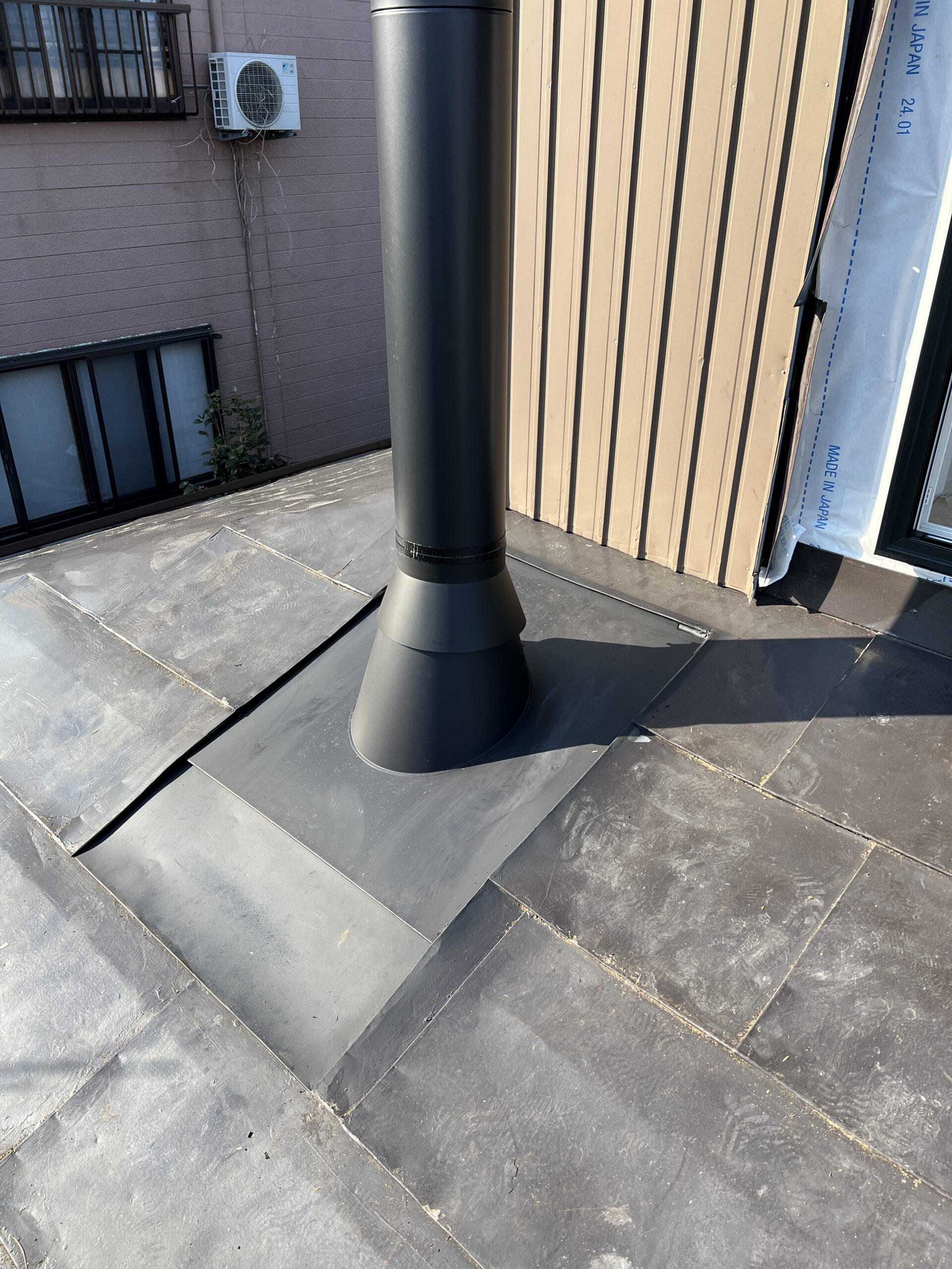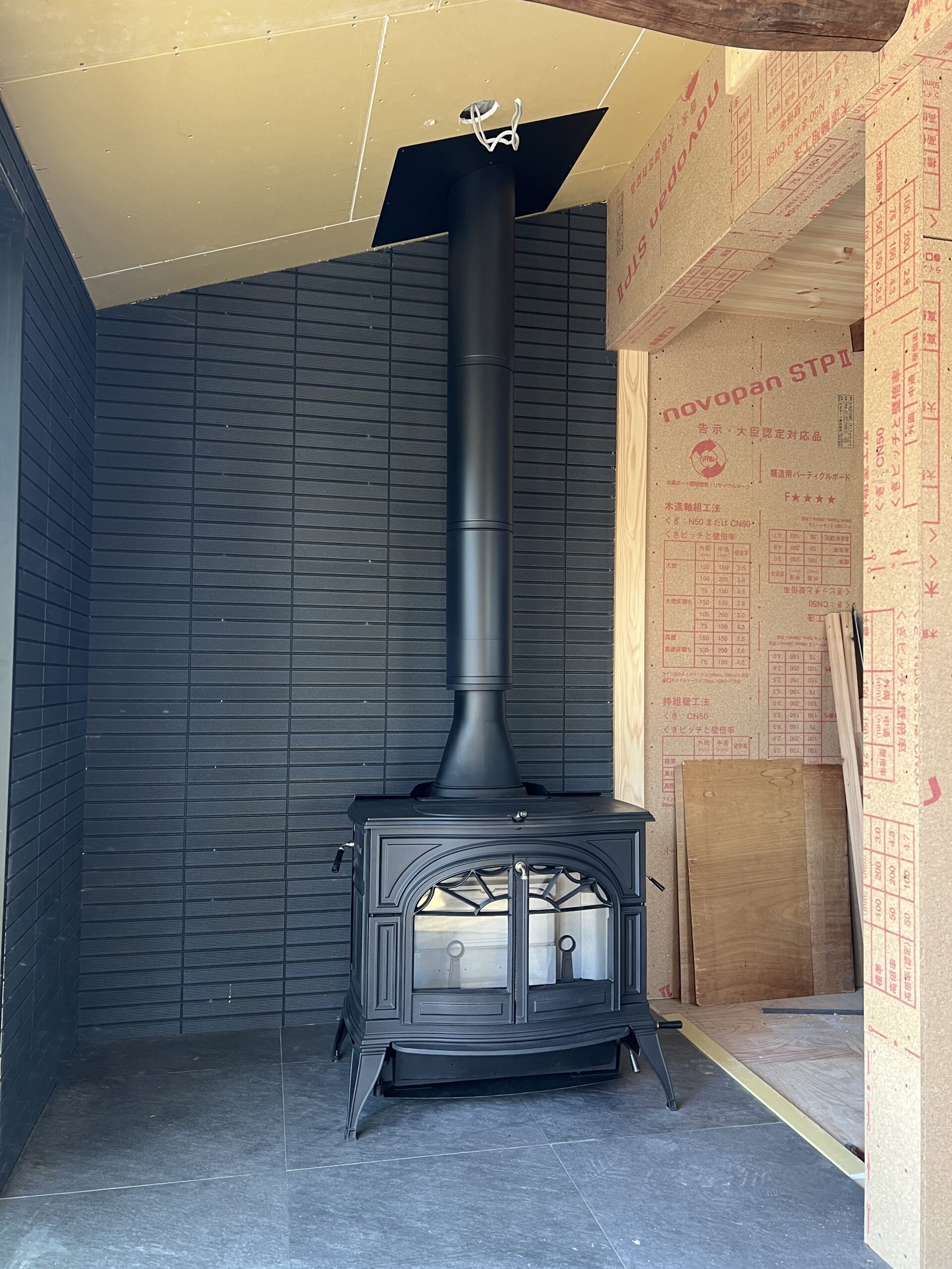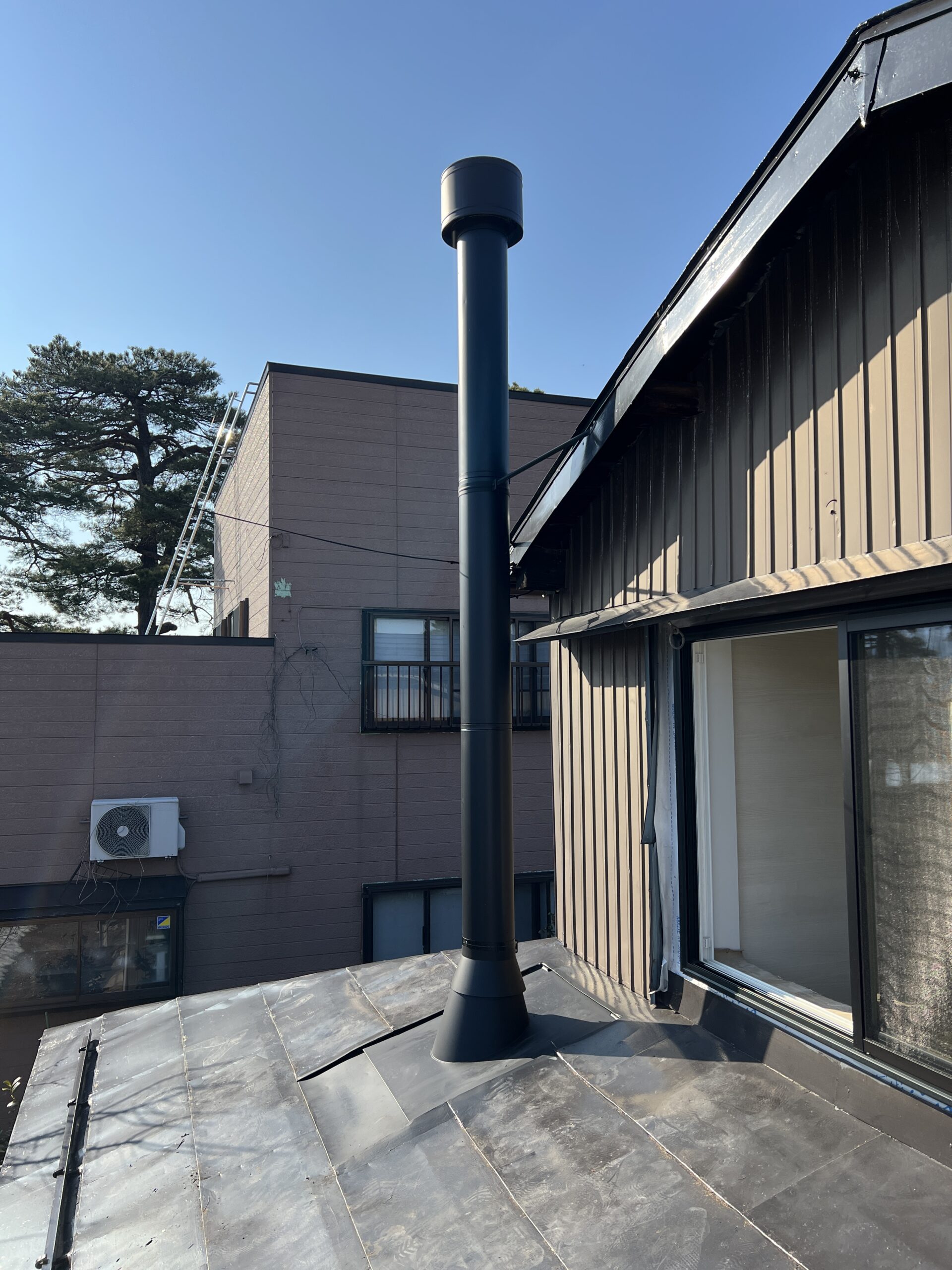 既存住宅をリノベーションされ、バーモントキャスティングス デファイアントを設置させていただきました。 今回お選びいただいたのは、弊社にて新品同様にまで丁寧にオーバーホールを施した一台です。年月を経てなお色褪せないバーモントキャスティングスならではの気品ある佇まいが、リノベーションによって新しく生まれ変わった住まいに、深い趣を添えています。 既存の建物を活かした施工となるため、屋根上は「屋根フラッシング工法」を採用。建物の構造に合わせ、雨仕舞いと安全性を徹底した確実な工事を行いました。黒いタイルを贅沢にあしらった背面壁と、存在感のあるデファイアントの組み合わせは、モダンでありながらどこか懐かしさを感じさせる、落ち着いた空間を演出しています。 力強い暖房能力を誇るデファイアントに火が灯ると、リノベーションされたばかりのリビングが、一瞬にして柔らかい熱気に包まれました。かつての面影を残しつつ新しくなったこの家で、再生されたストーブが刻む新しい歴史を、どうぞ末長くお楽しみください。