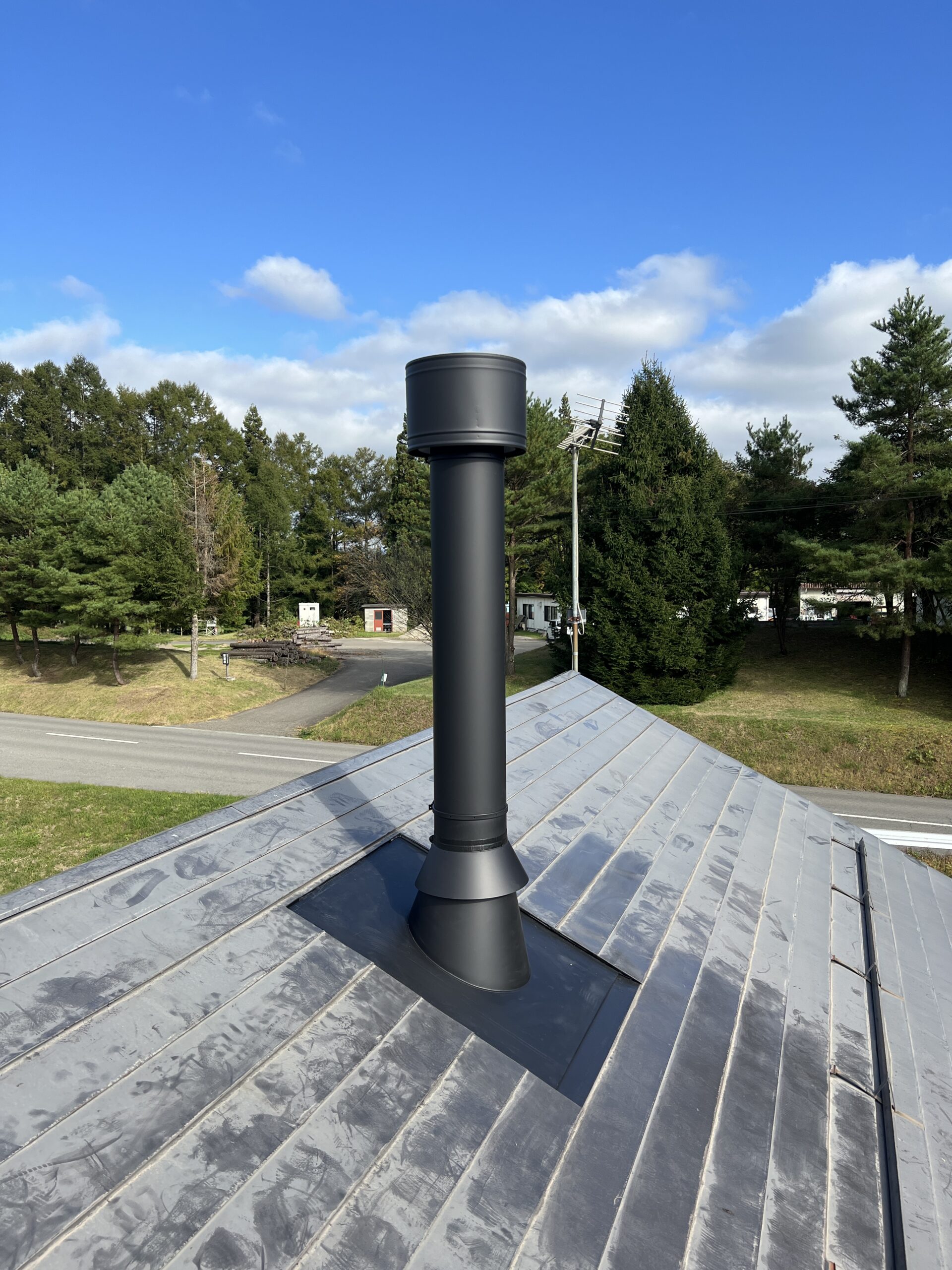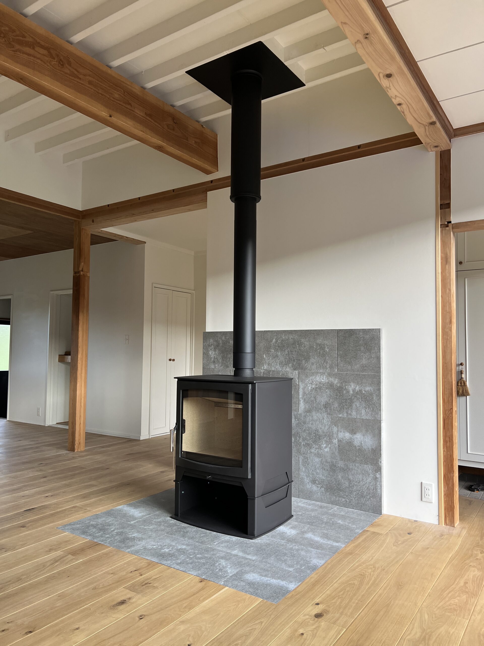 既存住宅のリノベーションに伴い、ASPECT 14(アスペクト14)の設置工事を行いました。 1階の薪ストーブ設置位置から2階および屋根裏部屋を貫通する煙突ルートを計画。屋根フラッシング工法にて納めさせていただきました。 また煙突貫通部の造作木工事や外部の板金雨仕舞いの工程など、すべて自社で施工し、細部まで品質管理を徹底しています。 さらに施工には自社オリジナルの煙突施工治具 を使用。煙突の芯出しを正確に行いながら、寸分の狂いなく煙突を設置しました。 既存住宅への薪ストーブ設置は、建物ごとに異なる条件への対応力が求められます。当社では建築士が設計及び監理を行い、施工者全員が日本暖炉ストーブ協会 認定技術者が施工を行います。これまでの経験と施工技術を活かし、既存住宅への薪ストーブ設置を得意としています。